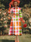 Women's Colorful Abstract Plaid Art Print Cotton Lapel Button-Down Shirt Dress