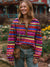 Women's Colorful Retro Stripes Art Print Casual Cotton Long Sleeve V-neck Shirt