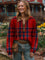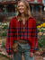 Women's Retro Colorful Plaid Art Print Casual Cotton Long Sleeve V-neck Shirt