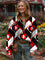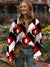 Women's Retro Colorful Plaid Art Print Casual Cotton Long Sleeve V-neck Shirt