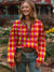 Women's Retro Colorful Plaid Art Print Casual Cotton Long Sleeve V-neck Shirt