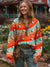 Women's Vintage Rainbow Stars Art Print Casual Cotton Long Sleeve V-neck Shirt