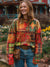 Retro Abstract Christmas Plaid Art Print Knit Pullover Sweater