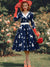 Women's Vintage Christmas Art Print V-neck Elegant Maxi Dress