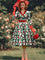 Women's Vintage Christmas Art Print V-neck Elegant Maxi Dress