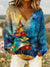 Women's Vintage Christmas Tree Art Print Casual Pullover Sweater