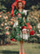 Women's Vintage Christmas Tree Santa Art Print V-neck Elegant Maxi Dress