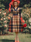 Women's Colorful Retro Plaid Art Print V-neck Elegant Maxi Dress