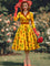 Women's Vintage Abstract Cactus Art Print V-neck Elegant Maxi Dress