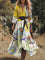 Women's Vintage Abstract Flowers Art Print Print Pocket Cotton Dress