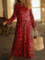 Women's Vintage Flower Art Print Long Sleeve Round Neck Dress