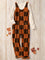 Women's Retro Plaid Art Print Casual 100% Cotton Wide Leg Jumpsuit