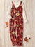 Women's Vintage Flower Art Print Casual 100% Cotton Wide Leg Jumpsuit