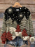 Christmas Tree Snow Scene Romantic Floral Print Cozy Plush Sweate