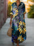 Women's Colorful Floral Art Prints Cotton Lapel Button-Down Shirt Dress
