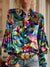 Women's Colorful Retro Stripes Art Print Casual Cotton Shirt