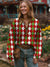 Women's Retro Colorful Plaid Art Print Casual Cotton Long Sleeve V-neck Shirt