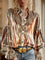 Women's Retro Stripes Art Print Casual Cotton Shirt