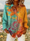 Women's Vintage Bohemian Flowers Art Print Casual Cotton Shirt