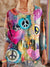 Women's Vintage Bohemian Love and Peace Print Casual Long Sleeves T Shirt