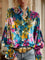 Women's Vintage Flower Art Print Casual Cotton Shirt