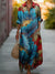 Women's Vintage Flower Art Print Cotton Lapel Button-Down Shirt Dress