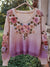 Boho Floral Embroidery Women's V-neck Gradient Sweater
