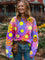 Colorful Abstract Floral Art Print Knit Pullover Sweater
