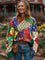 Colorful Retro Floral Art Print Knit Pullover Sweater