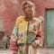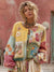Flower Embroidery Macaroon Color Patchwork Art Print Button Sweater Cardigan