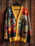 Vintage Art Print Buttoned Cardigan Sweater
