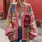 Women's Bohemian Flower Embroidery Patchwork Art V-neck Knit Sweater Cardigan