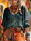 Women's Retro Floral Art Print Casual Pullover Sweater