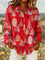 Women's Vintage Christmas Tree Art Print Casual Cotton Shirt